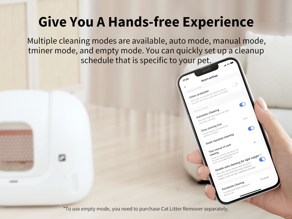 - An efficient and automatic system that cleans up your cat’s messes with no effort, freeing both your hands and time