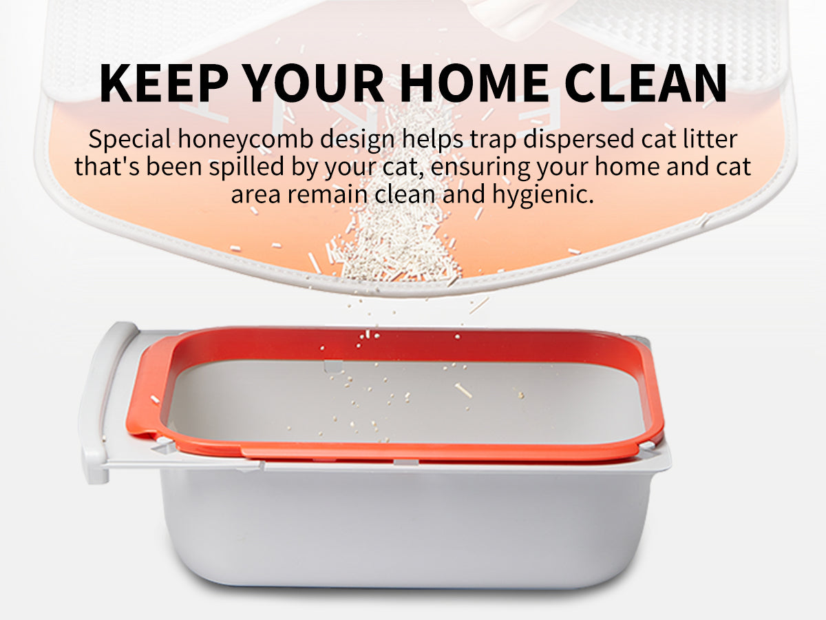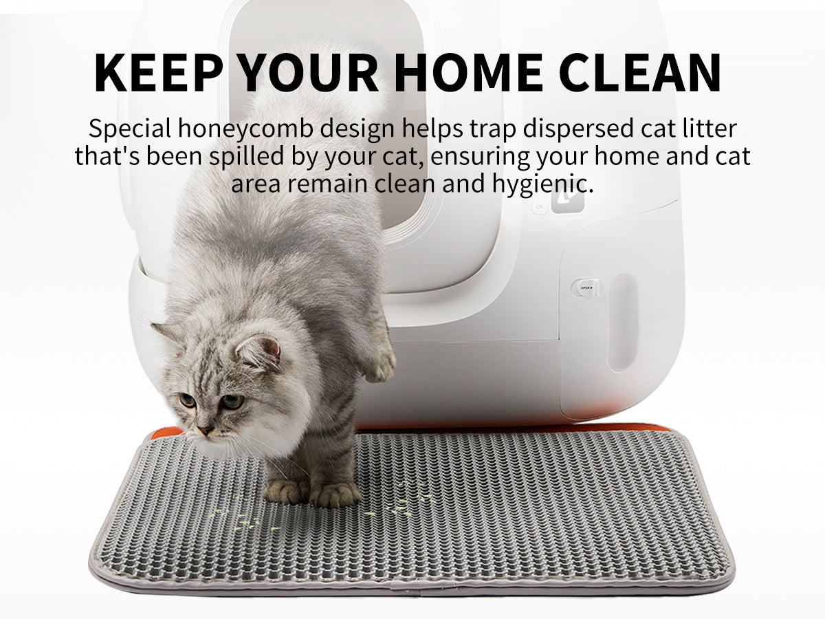 With a double-layered litter mat that’s constructed out of environmentally friendly materials, not only can it be a comfortable and soft landing pad for your kitty’s paws when they jump out of the litter box, but there’s also an orange “safe zone” area, which indicates where the litter is most likely to land.