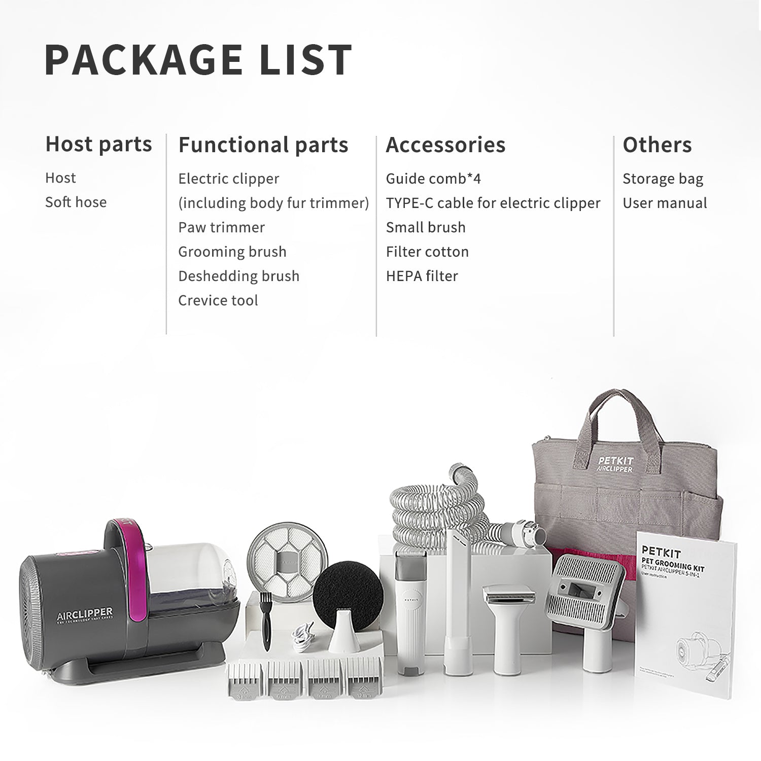 Introducing the PETKIT 5-in-1 Pet Grooming Kit, the ultimate game changer for the indoor grooming experience for your furry friends – with 5 professional grooming tools, you can easily brush, trim, and vacuum your pet’s fur all at once!
