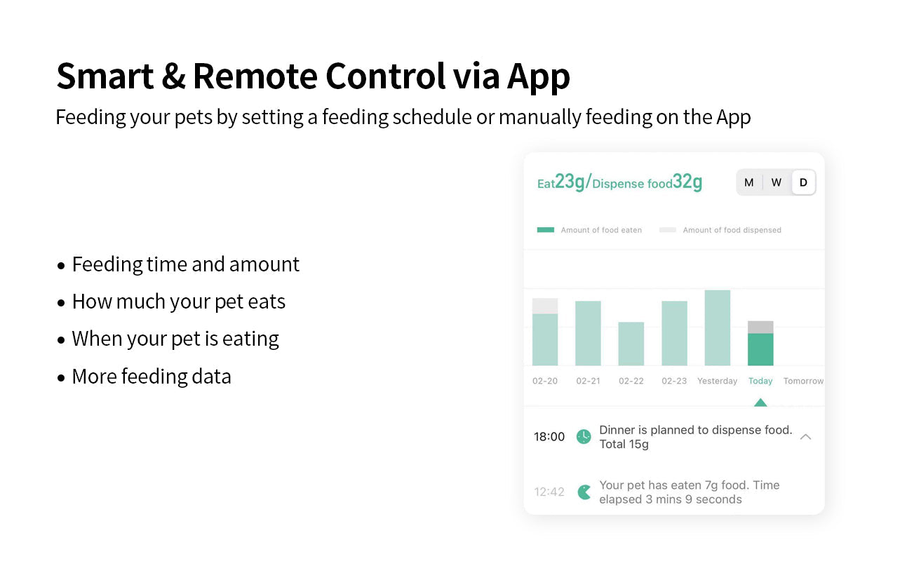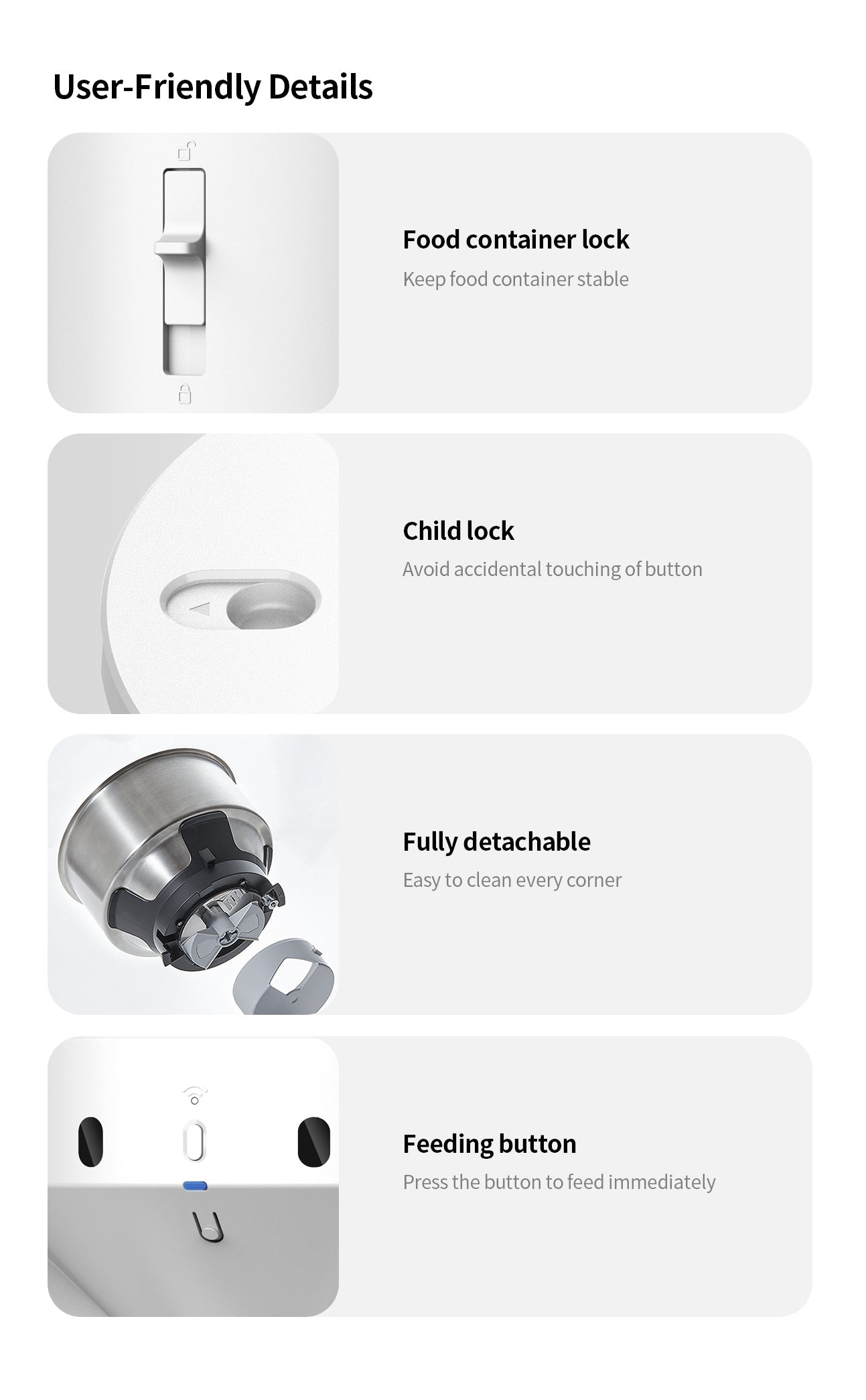 - APP control - customise feeding plan, monitor food intake and alert notifications