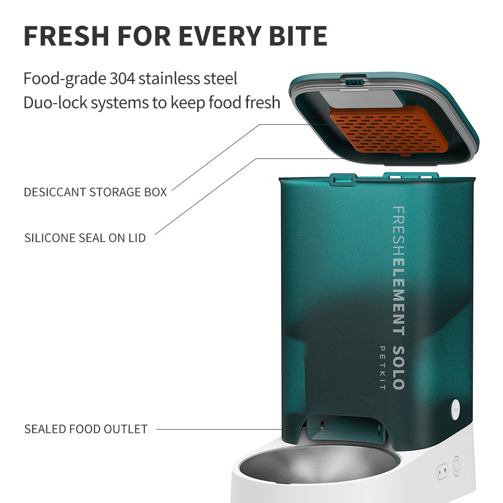 The PETKIT Solo feeder is a timeless beauty that will fit right into any home. This 3L capacity feeder is the perfect choice for those who have a single pet at home and want all the benefits of customized feeding all at the touch of a button. Use the PETKIT app to customize your pet's feeding schedule and with its multiple fresh lock protection, you can be assured that the kibbles will always be delivered fresh! The Solo feeder also features a clog-free design, 304 stainless steel bowl, back-up battery supply and remote interconnection which allows you to control the app even while you're away.