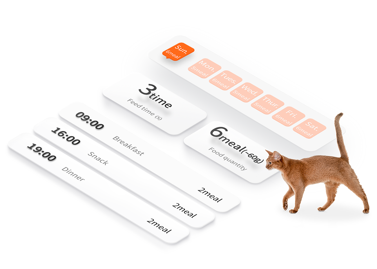 This feeder enables you to set up personalized feeding time and portions for your beloved pets. Precise portion control (up to 5 portions per meal) helps pets develop healthy eating habits. Extra feeding is also available on the app to meet dietary needs.